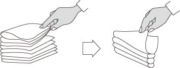 洗面室のタオルは何枚も重ねてあるので、一度に何枚もとっていくお客様がいる。そこで図のようにタオルの隅を出すように折って、一度に1枚だけつかみやすくした。