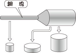| [改善後] サンプル採取管に図のような形の石英管を埋め込んだ。石英管は中身が真空になっており、先端を溶鋼に浸けると溶けて溶鋼を吸い込む。これにより右のような鋼塊を取り出し、これを切ってピン状、コイン状、塊状のサンプルとして使えるようにした。 取材先 日新製鋼呉製鉄所 取材 1981/12/18 掲載 創意とくふう1982/03 |