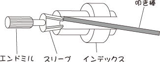 | [改善前] インデックスからエンドミルを抜き取るとき、叩き棒でスリーブごと叩き出していた。 |
