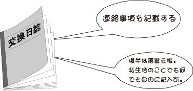 | ③交換日誌を設置し、店長、リーダー、パート・アルバイトからの連絡事項はここに記入することとし、見た人はサインすることにした。 |