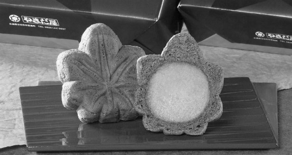 ■整腸作用のある竹炭パウダーを売り込みたいとの相談が寄せられたのを機に、黒いもみじ饅頭を作ったら…と閃いてメーカーに提案。その提案が採用され、クリエイターたち得て、デザインやPRを引き受け、黒いもみじ饅頭の開発と販売に成功した。 |