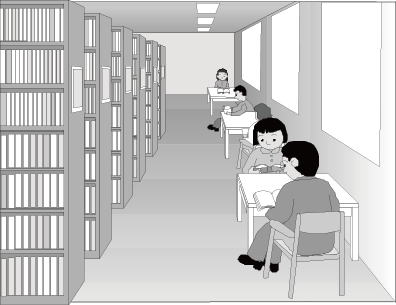 | Dタッチパネル式のコンピュータが備えられ、目的の本の在庫があるかどうか、どの書棚にあるかを調べられる。 | ![]() |
